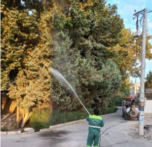 شست و شوی درختها و درختچهها با هدف پاکسازی و رفع آلودگی از آنها انجام میشود و یکی از بندهای قراداد حفظ و نگهداری فضای سبز با پیمانکاران به شمار میرود.