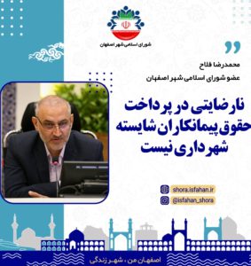 نارضایتی در پرداخت حقوق پیمانکاران شایسته شهرداری نیست.