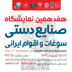 هفدهمین نمایشگاه صنایع دستی، سوغات و اقوام ایرانی از ۱۱ تا ۱۵ اردیبهشتماه همه روزه از ساعت ۱۵ تا ۲۱ میزبان بازدیدکنندگان در نمایشگاه بینالمللی اصفهان واقع در کمربندی شرق روبروی منطقه روشندشت است.