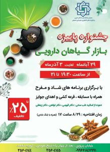 رئیس اداره بازارهای سازمان میادین و ساماندهی مشاغل شهری شهرداری اصفهان از برگزاری جشنواره پاییزه بازار گیاهان دارویی اصفهان از ۲۹ آبان تا سوم آذرماه سال جاری خبر داد.
