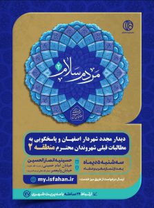 نهمین دیدار صمیمانه شهردار اصفهان با عنوان «مردم سلام» با اهالی منطقه ۲ روز سه شنبه ۵ دی ماه سال جاری در حسینیه انصارالحسین(ع) واقع در خیابان ولیعصر(عج) برگزار میشود.