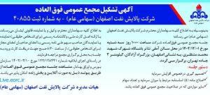 تشکیل مجمع عمومی فوق العاده شرکت پالایش نفت اصفهان(سهامی عام)