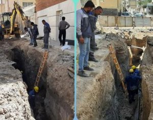 در ادامه عملیات تعمیر شبکه فاضلاب بوسیله تعویض سه شاخه لوله قطر ۳۰۰ میلیمتری و پرسازی مسیر پس از تلاش بی وقفه به مرحله اجرا درآمد.