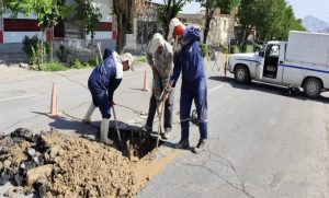 لوله ایرانیت شبکه توزیع آب به قطر ۱۵۰ میلیمتر واقع در خیابان اصلی شهر دچار شکستگی شد.