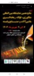 شانزدهمین نمایشگاه بینالمللی متالورژی، فولاد، ریختهگری، ماشینآلات و سایر صنایع وابسته از ششم تا نهم شهریورماه از ساعت ۱۱:۰۰ تا ۱۹:۰۰ در محل نمایشگاه بینالمللی اصفهان برگزار می شود.
