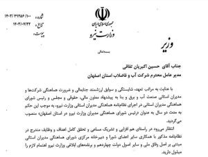 با حکم وزیر نیرو حسین اکبریان، مدیر عامل شرکت آب و فاضلاب استان اصفهان به مدت ۲ سال به عنوان “رئیس شورای هماهنگی مدیران وزارت نیرو در اصفهان” منصوب شد.