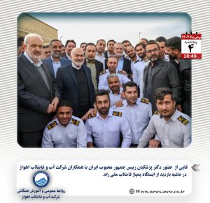 🔻قابی از حضور دکتر پزشکیان رییس جمهور محبوب ایران با همکاران شرکت آب و فاضلاب اهواز در حاشیه بازدید از ایستگاه پمپاژ فاضلاب ملی راه..