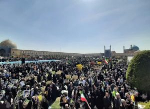 دراجتماع پرشکوه مردم اصفهان همه اقشار از پیر وجوان و زن ومرد آمده بودند و محو کامل مولود نامشروع آمریکای جنایتکار ، اسرائیل کودک کش خواستار شدند .